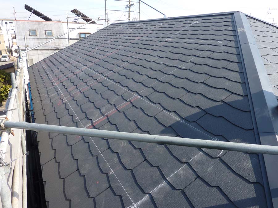 太陽光発電スレート屋根設置準備・墨出し